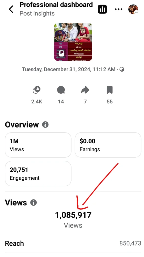 Viral Trend :- 1st Post Insigths ➡️ 1 Million + Views 👇